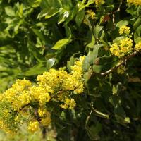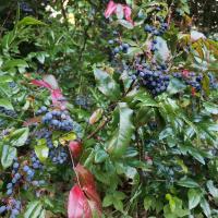 Бордюры в секции образует вечнозелёный кустарник магония падуболистная – представитель семейства барбарисовые. Родина вида – западные штаты США. На родине кустарник достигает высоты до 1,5 м. В наших условиях его высота определяется главным образом высотой снежного покрова – зимой побеги магонии выше поверхности снежного покрова, как правило, отмерзают. Данный вид – хороший медонос и декоративен в любое время года, чему способствуют тёмно-зелёные кожистые листья, ярко жёлтые соцветия и фиолетовые, с сизым налётом ягоды.