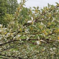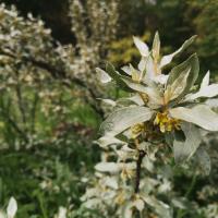 Интересный листопадный кустарник, произрастающий в редколесьях востока Северной Америки – лох серебристый. Кустарник привлекает внимание серебристой окраской листьев, являющейся признаком того, что он приспособлен к произрастанию в засушливых местообитаниях. Приспособлением для уменьшения испарения воды листьями у лоха выступают мелкие чешуйки, отражающие солнечную радиацию и препятствующие разогреву растения. Эти чешуйки-отражатели обильно покрывают его побеги; причём, если на молодых веточках чешуйки рыжеватые, то на листьях они белые – поэтому листья смотрятся как серебристые. В период цветения мелкие жёлтые цветки лоха издают резкий медовый аромат.